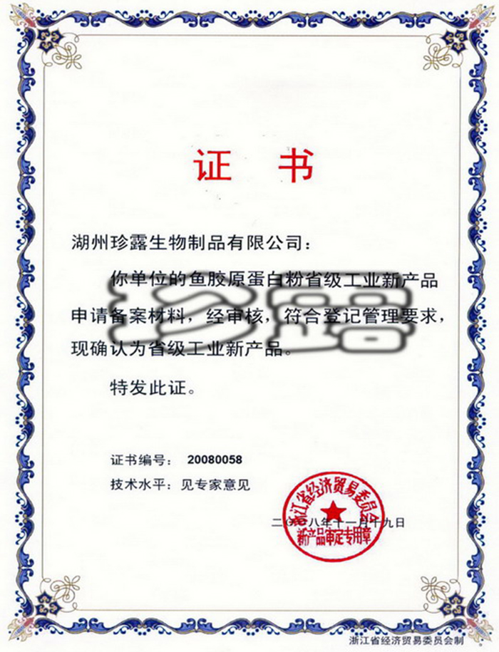 浙江省工業(yè)新產(chǎn)品(魚(yú)膠原蛋白粉)